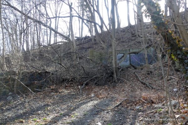 That lot backs against steep slopes that hold up a Presbyterian Church cemetery dating to the Revolution.