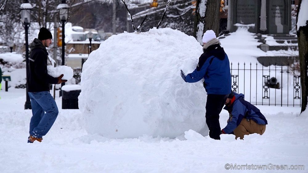 The National Weather Service did not have a snow total for Morristown on Monday. But there were some pretty giant snowpersons on the Green!